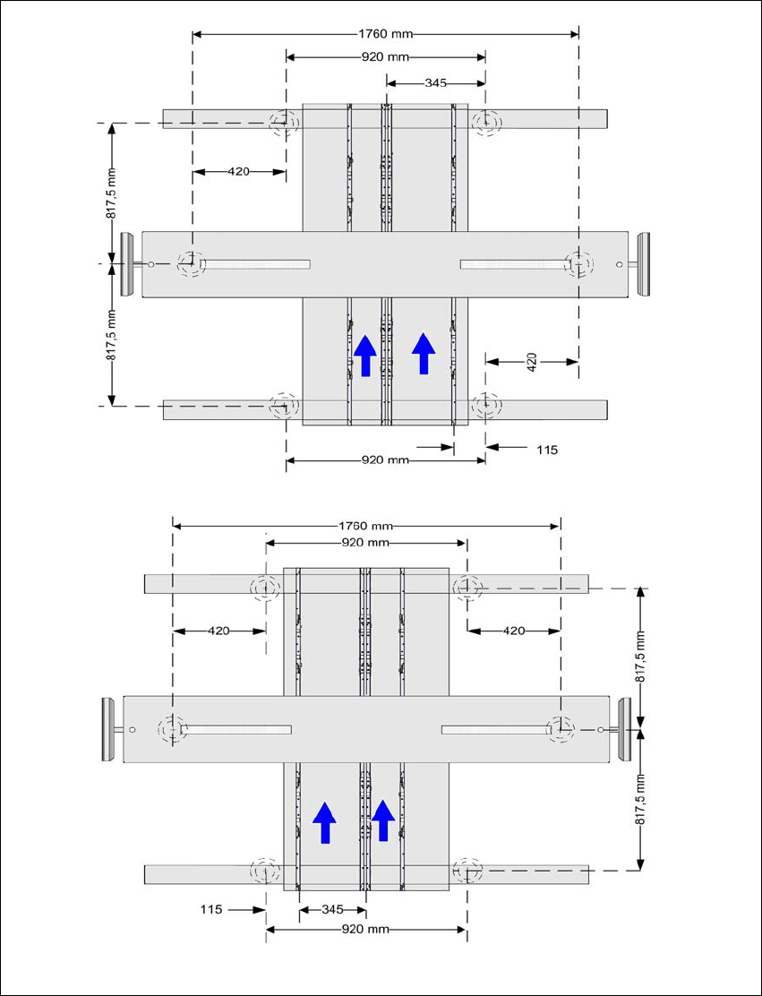 Abb. 4.3 - 10 Abstandsmaße der Maschinenfüße des Quad Lane Transports in Millimeter