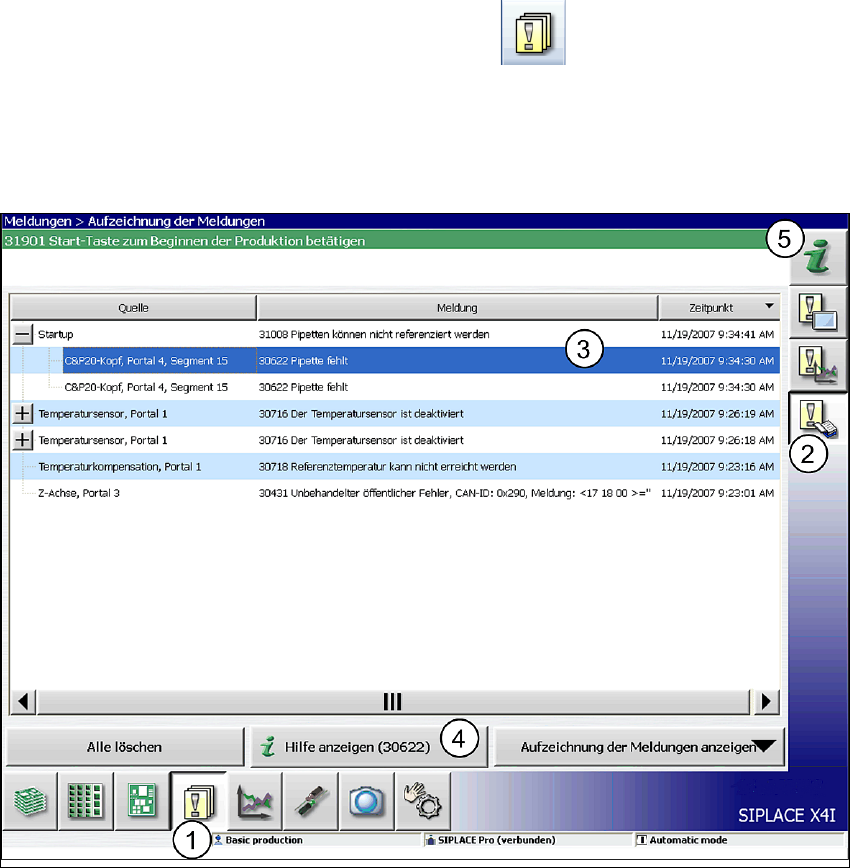 Abb. 5.6 - 2 Beispiel: Alarmliste (am Beispiel der SIPLACEX4i)