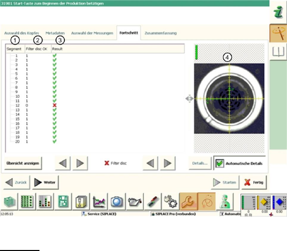 then the segments are examined in order with the component camera, to check whether a filter disc is