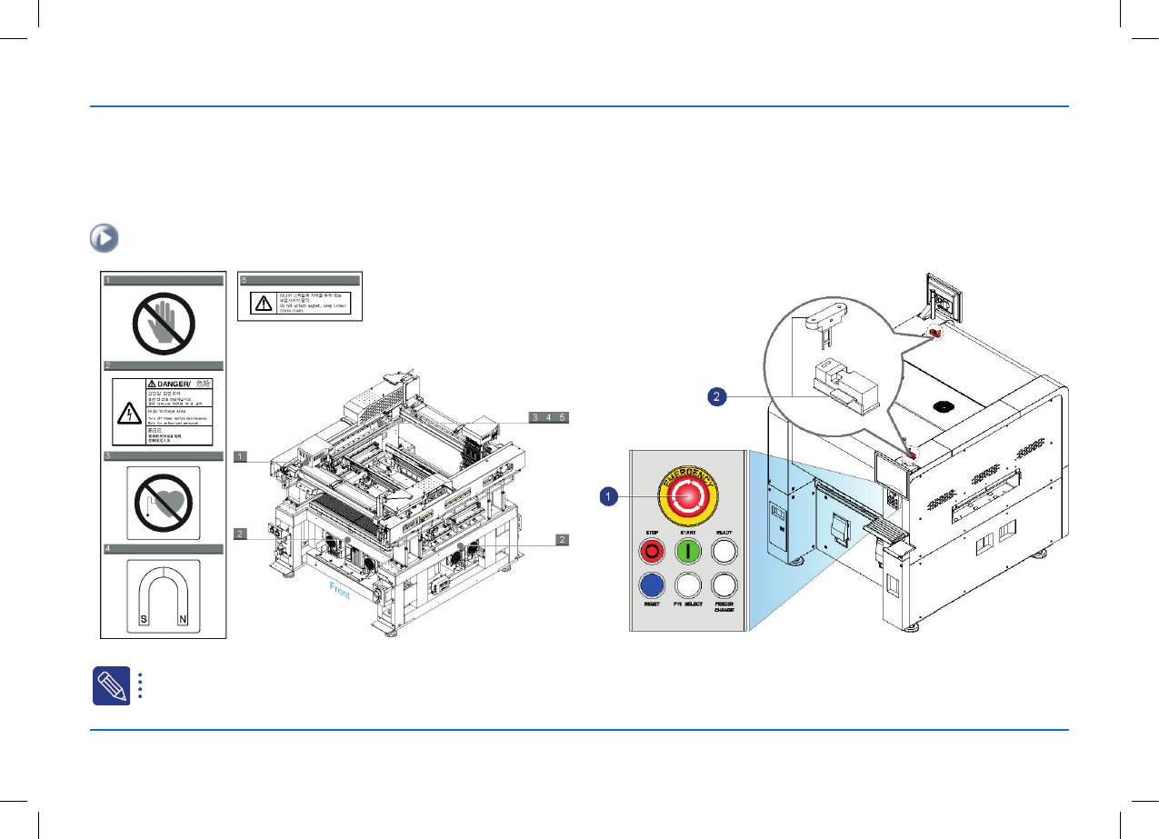 ※ 安全警告及注意事项 为了安全地使用设备 , 在下列位置粘贴了安全提示标签。 设备前面 安全提示标签的详细内容请参阅 Administrator' s Guide 。 设备后面