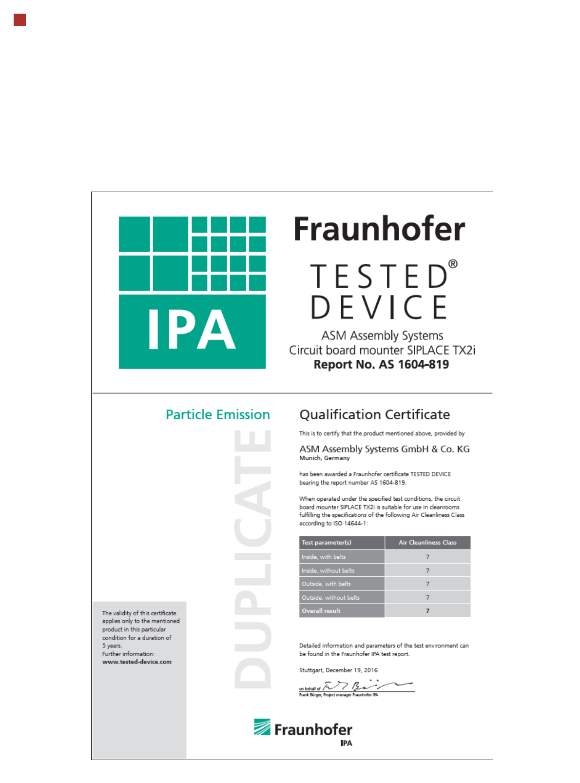 placement machine SIPLACE TX-series fulfil the requirements of IEC 61340-5-1; IEC/TR 61340-5-
