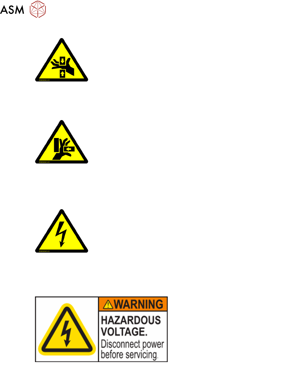 2 Sicherheit 2.2 Warnschilder Betriebsanleitung ASM ProcessLens Dual-lane 06/2018 29 2.2.3.11 Warnschild P010 - Nicht berühren Abb.20: Nicht-berühren-Schild (Anzahl pro Maschine: 1) Nicht berühren! Das optische Modul ni…
