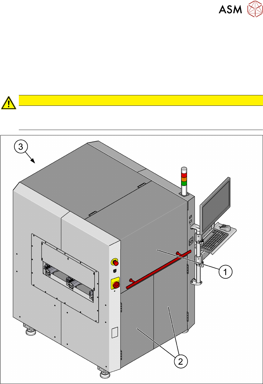 gängliche Frontschutzhaube (1) und die Fronttüren (2) sind verriegelt. Die rückseitige Abdeckung