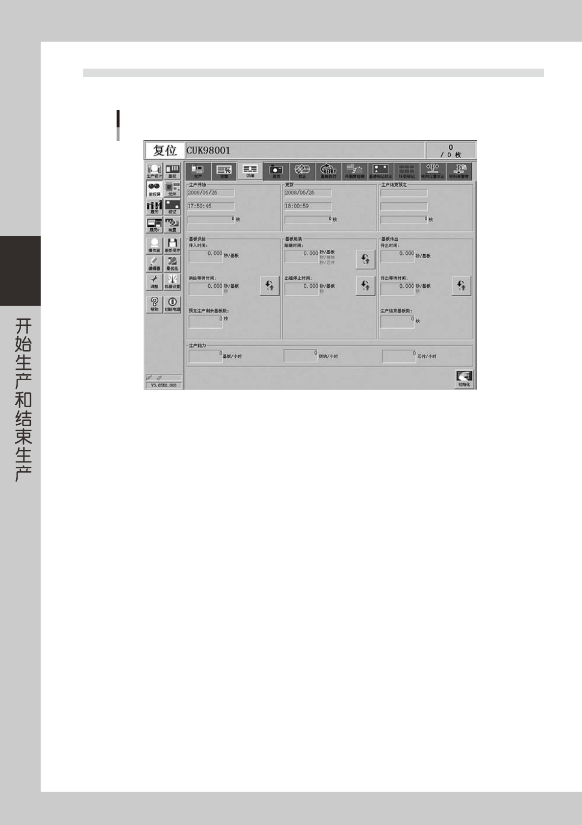 显示生产开始的时间 ( 完成基板选择的时间 )。一般,生产数量设定为“0”。