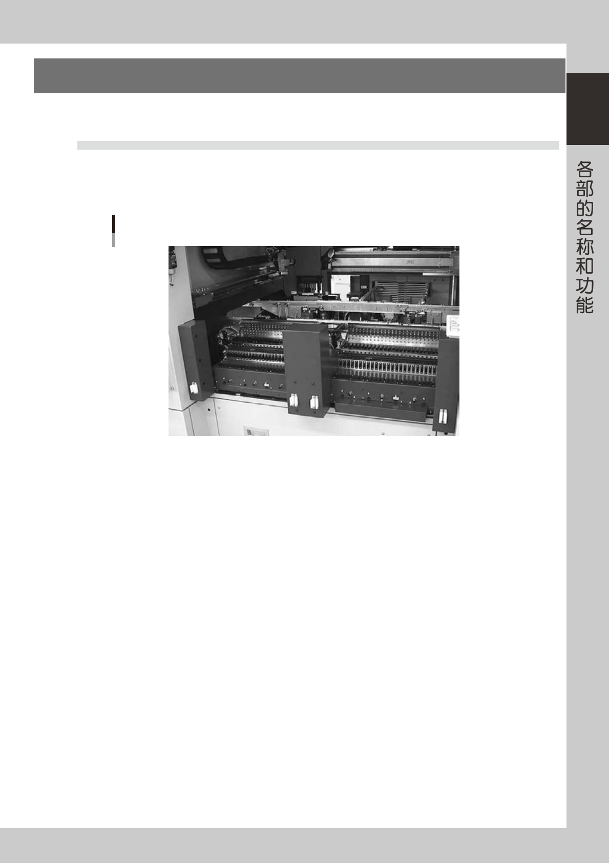 送料器安装部中配备着安装带式送料器的送料器架,驱动选配装置的电源和气源插口。