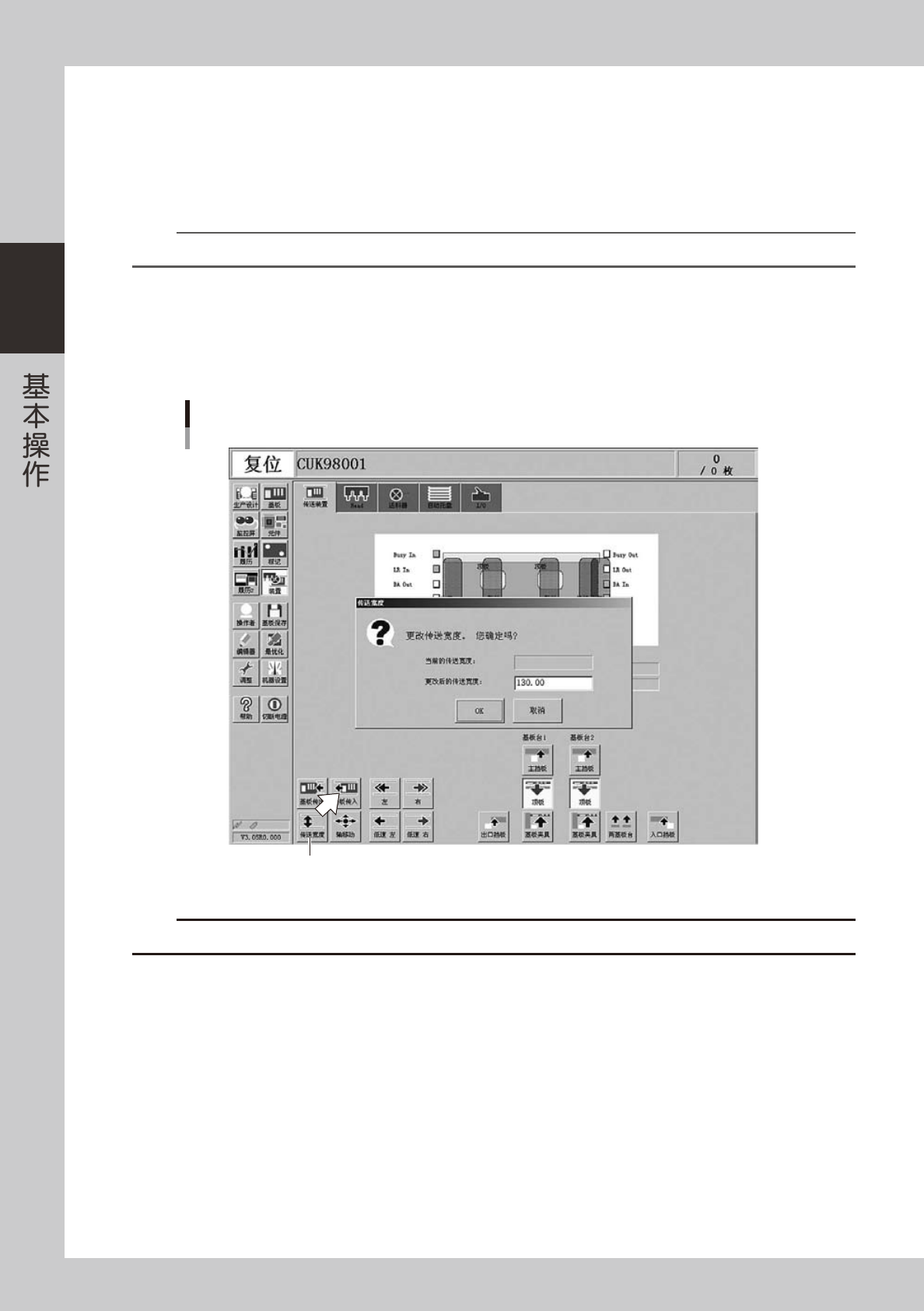 显示更改传送宽度对话框,确认传送宽度 ( 单位 :mm) 后,按 [OK] 按钮。传送宽度变为指定的宽度。