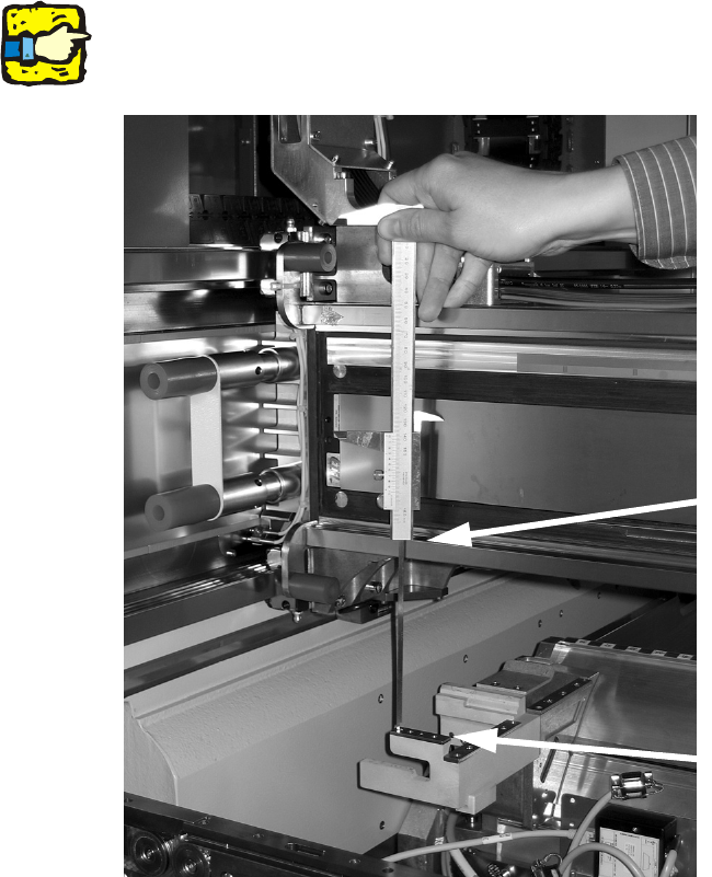 : Place the caliper gauge on the top edge of the nozzle take-off device and measure the distance
