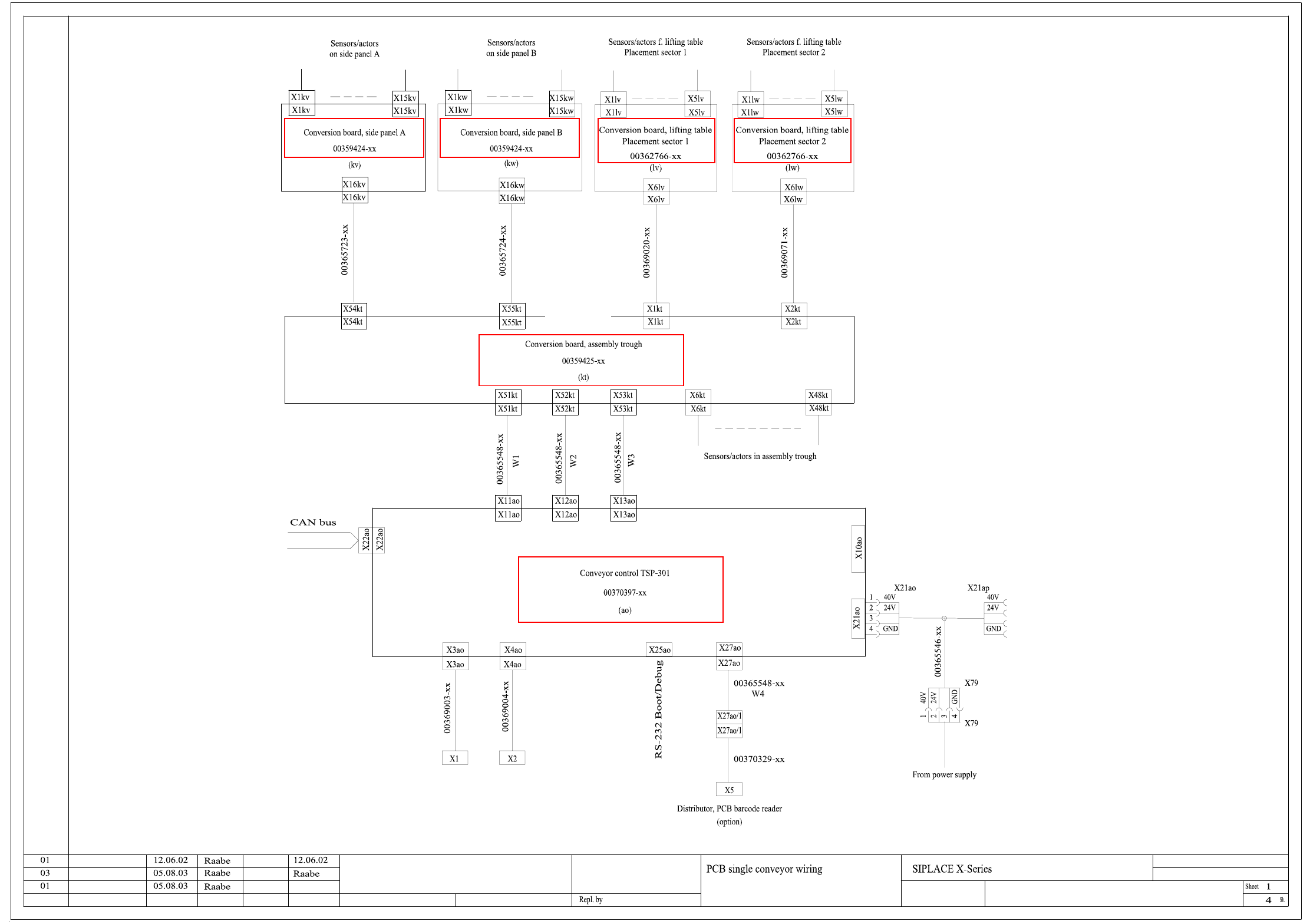 00119625-010301LD3 PCB single conveyor wiring (sh. 1 of 4)
