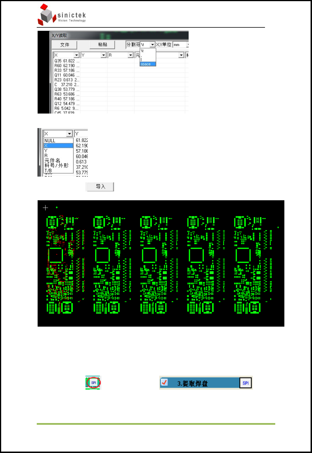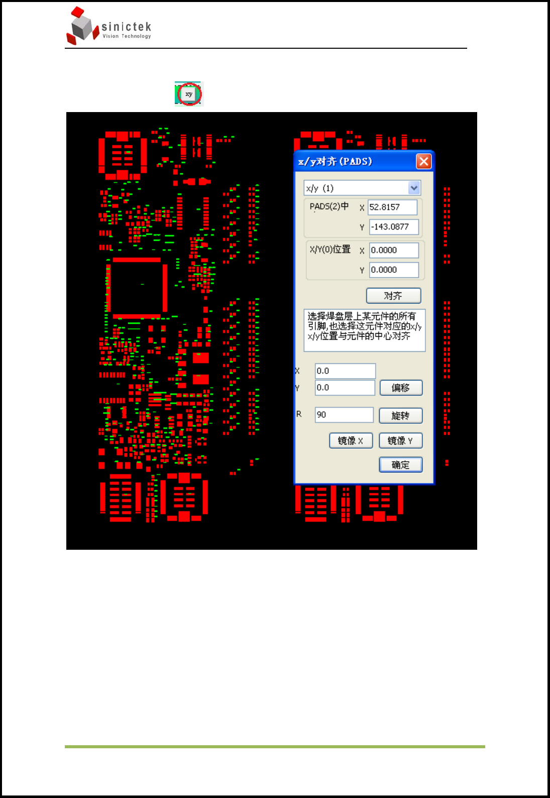 3D ‐ SPI 操作手册 思泰克光电科技有限公司 13 / 82 Copyrigh t by Sinic ‐ Te k Vi s i o n Te c h n o l o g y Co., Ltd. 4.1.5 调整X/Y坐标偏移 选择 X/Y 坐标偏…