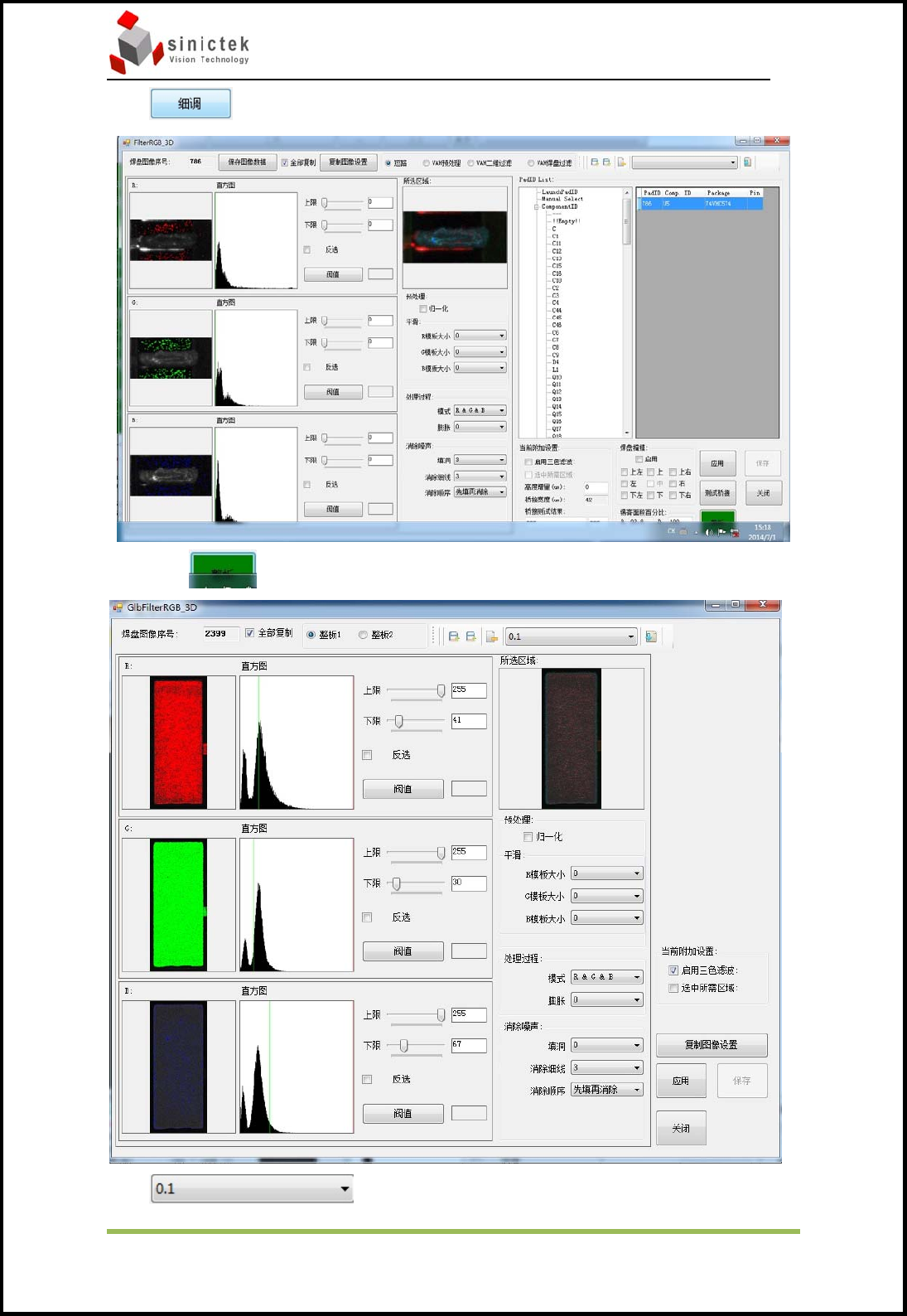 所选区域里的黄色就是抽取的锡膏,这里调节RGB的参数让锡膏部分都能被抽取