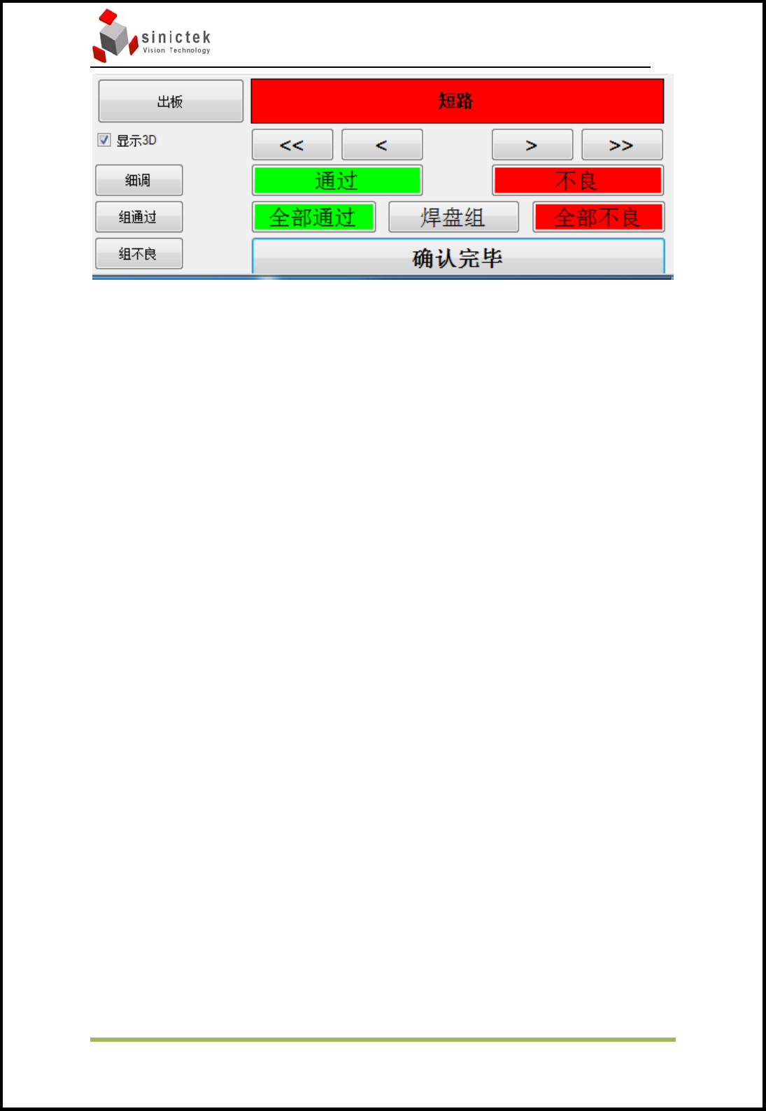 3D ‐ SPI 操作手册 思泰克光电科技有限公司 38 / 82 Copyrigh t by Sinic ‐ Te k Vi s i o n Te c h n o l o g y Co., Ltd. 五. 软件界面的介绍 5.1 用户主界面User I…