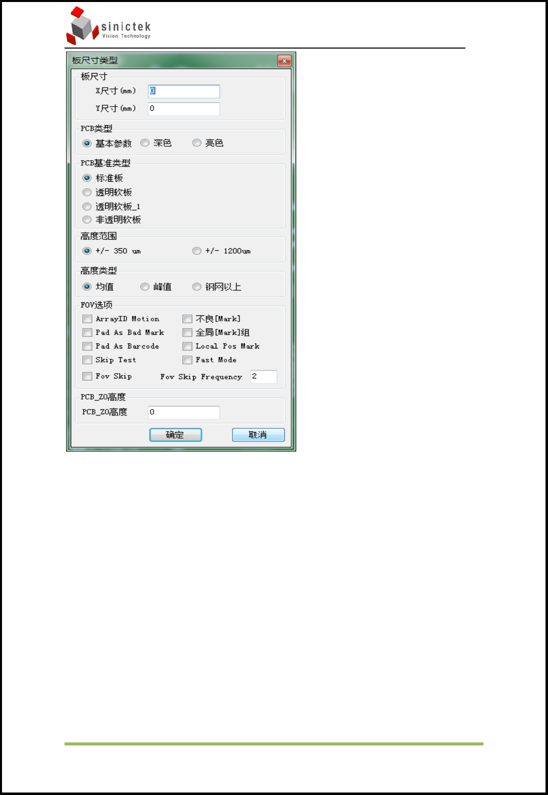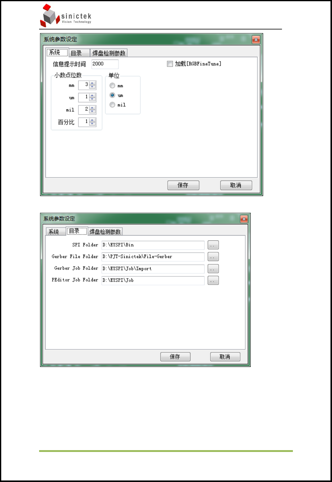 3D ‐ SPI 操作手册 思泰克光电科技有限公司 48 / 82 Copyrigh t by Sinic ‐ Te k Vi s i o n Te c h n o l o g y Co., Ltd. 对参数值设定的单位及显示小数点位数进行修改。 对ge…