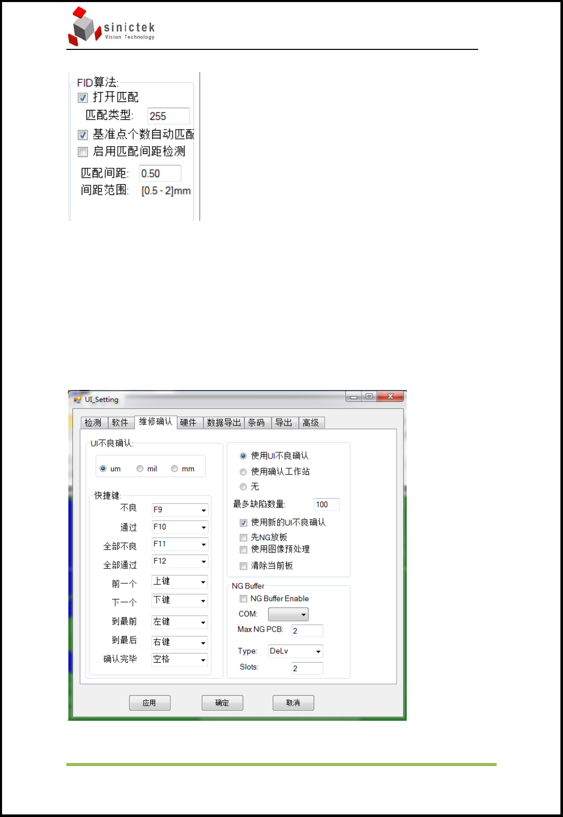 3D ‐ SPI 操作手册 思泰克光电科技有限公司 71 / 82 Copyright by Sinic ‐ Te k Vi s i o n Te c h n o l o g y Co., Ltd . 打开匹配:FID 算法,默认 255。 基准点个数…