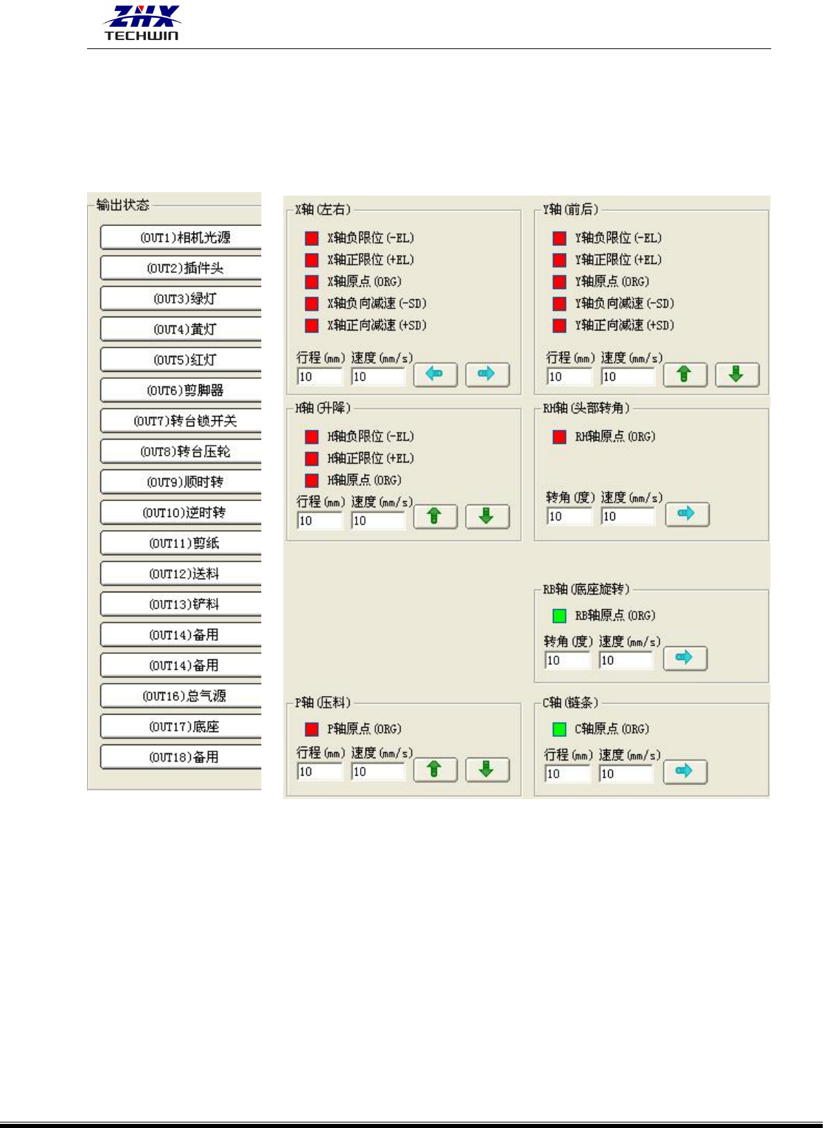(2) 专用输入信号 是指各轴上的光电开关当前输出(输入给电脑)的信号状态。