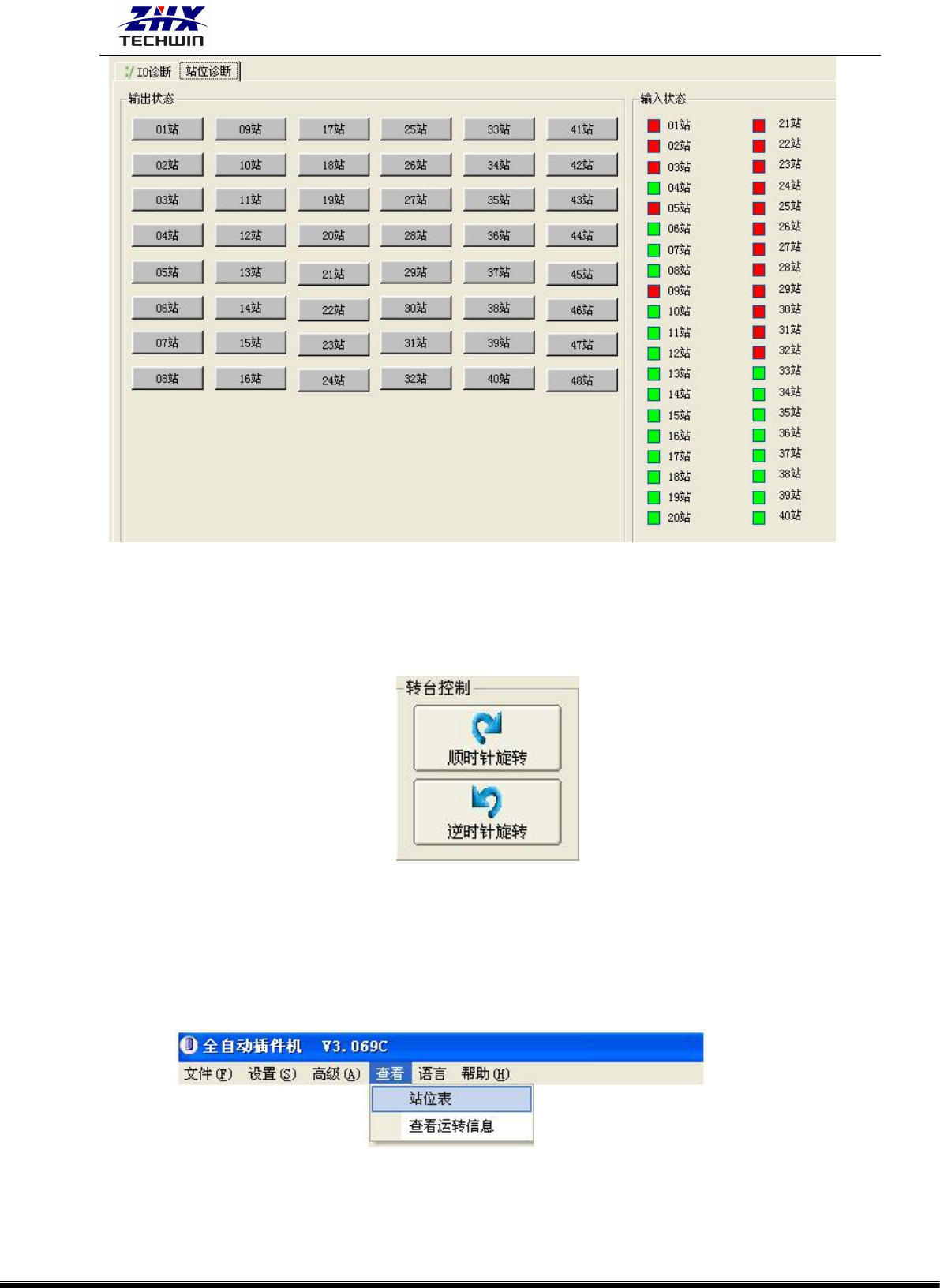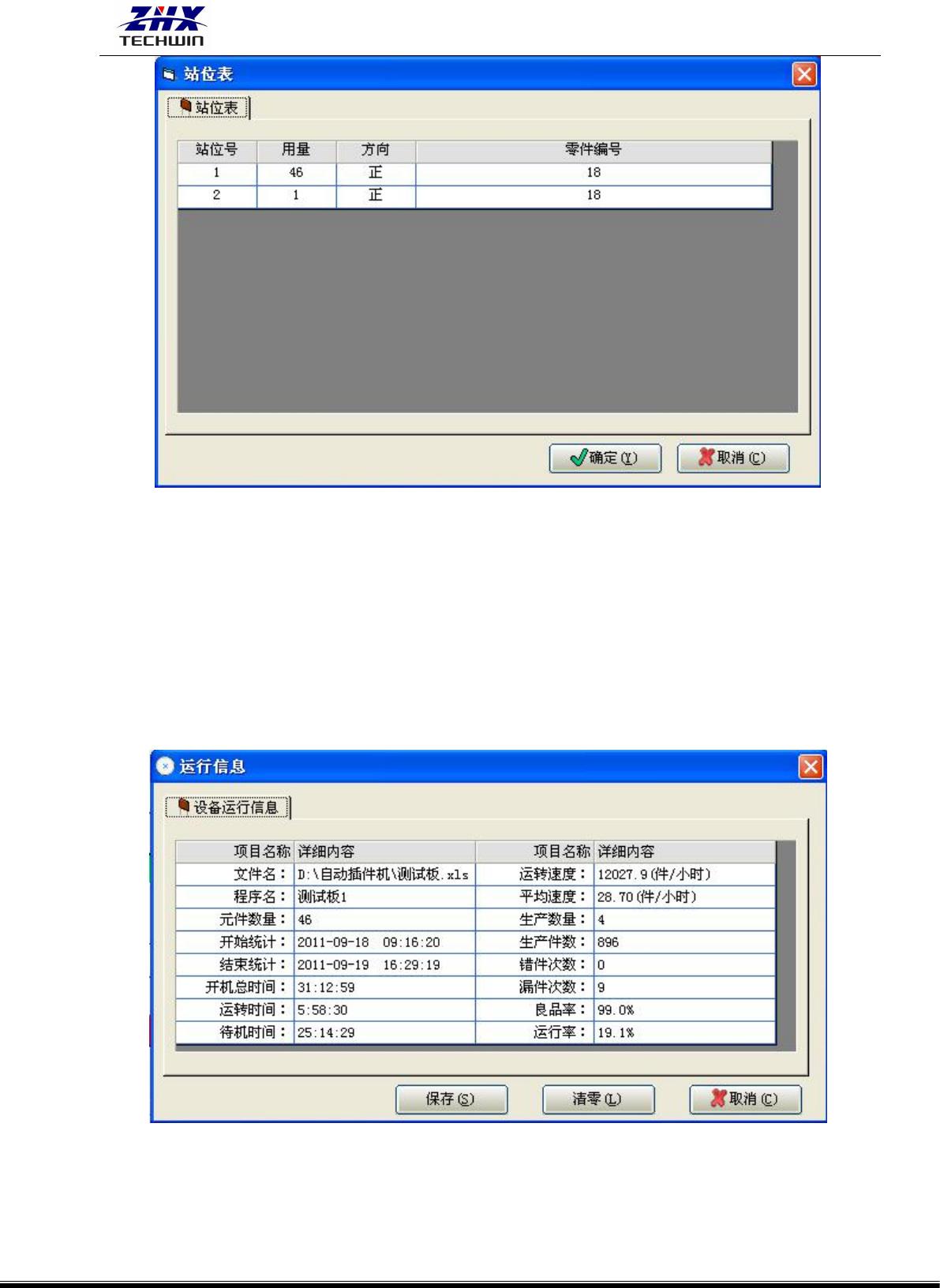 ZHX-R20B/-IN 自动上下板立式插件机操作说明书 深圳市中禾旭精密机械有限公司 www.zhxai.com - 20 - 修改站位,单击站位号列中的站号,就可以修改。 注:如果是在生 产时,更换站 位,只能后 面 的站位修改到前 面的站位去 ,反之程序 将会出错。 运转信息 ( 如图)显示当前运行的信息,包括文件名称、程序名称、件数、统计开始、统计 结束、开机总时间、运转时间等等一系列的设备的运转信息。 生产信息:包括产量、待机…