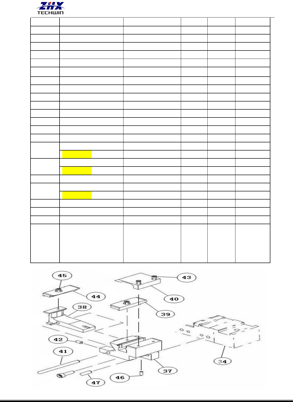ZHX-R20B/-IN 自动上下板立式插件机操作说明书 深圳市中禾旭精密机械有限公司 www.zhxai.com - 33 - 剪纸带零件 清单 序号 编号 中文名称 数量 单位 备注 1 L2015-09001 剪纸固定主块 1 个 2 L2015-09004 铰链 1 个 3 L2015-09005 气缸铰链连接块 1 个 4 L2015-09009 固定板 1 1 个 5 L2015-09007 弹簧限位挡块 1 个 6 L20…