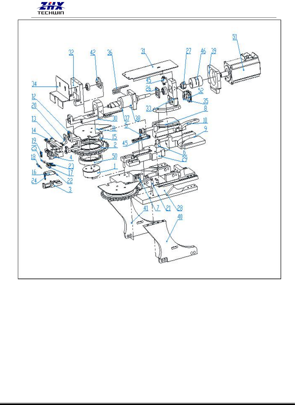 ZHX-R20B/-IN 自动上下板立式插件机操作说明书 深圳市中禾旭精密机械有限公司 www.zhxai.com - 37 - 送料装配图 明细表 序号 编号 中文名称 数量 单位 备注 1 LS1D-04001 滑块本体 2 个 2 LS1D-04002 链轮 1 2 个 3 LS1D-04005 卡料座子 1 个 4 LS1D-04006 送料器铁块 1 个 5 LS1D-04009 螺丝定位右座 1 个 6 LS1D-04010…