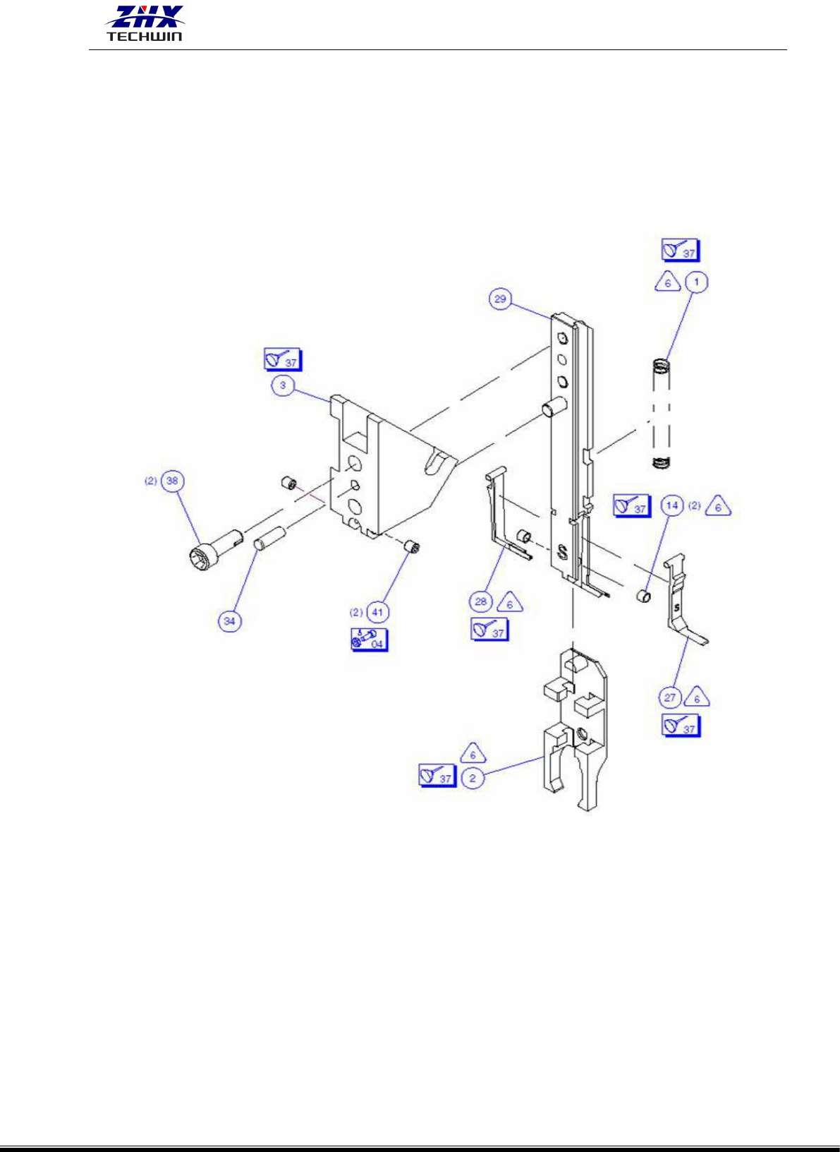 ZHX-R20B/-IN 自动上下板立式插件机操作说明书 深圳市中禾旭精密机械有限公司 www.zhxai.com - 69 - 3、CTA 调整 。 1) 弯形三叉推料器 (LS1D-04034) 的调整。 调整合适的标准是: 弯形三叉推料器下底面与链夹 之间的间隙在 0.15mm-0.25mm 之间。松开弯形三叉推料上的固定螺丝,上下调动弯形三叉推料 器,达到上述标准,然后锁紧固定螺丝。 插件头主爪 送料槽片 0.5—1mm 弯 形…