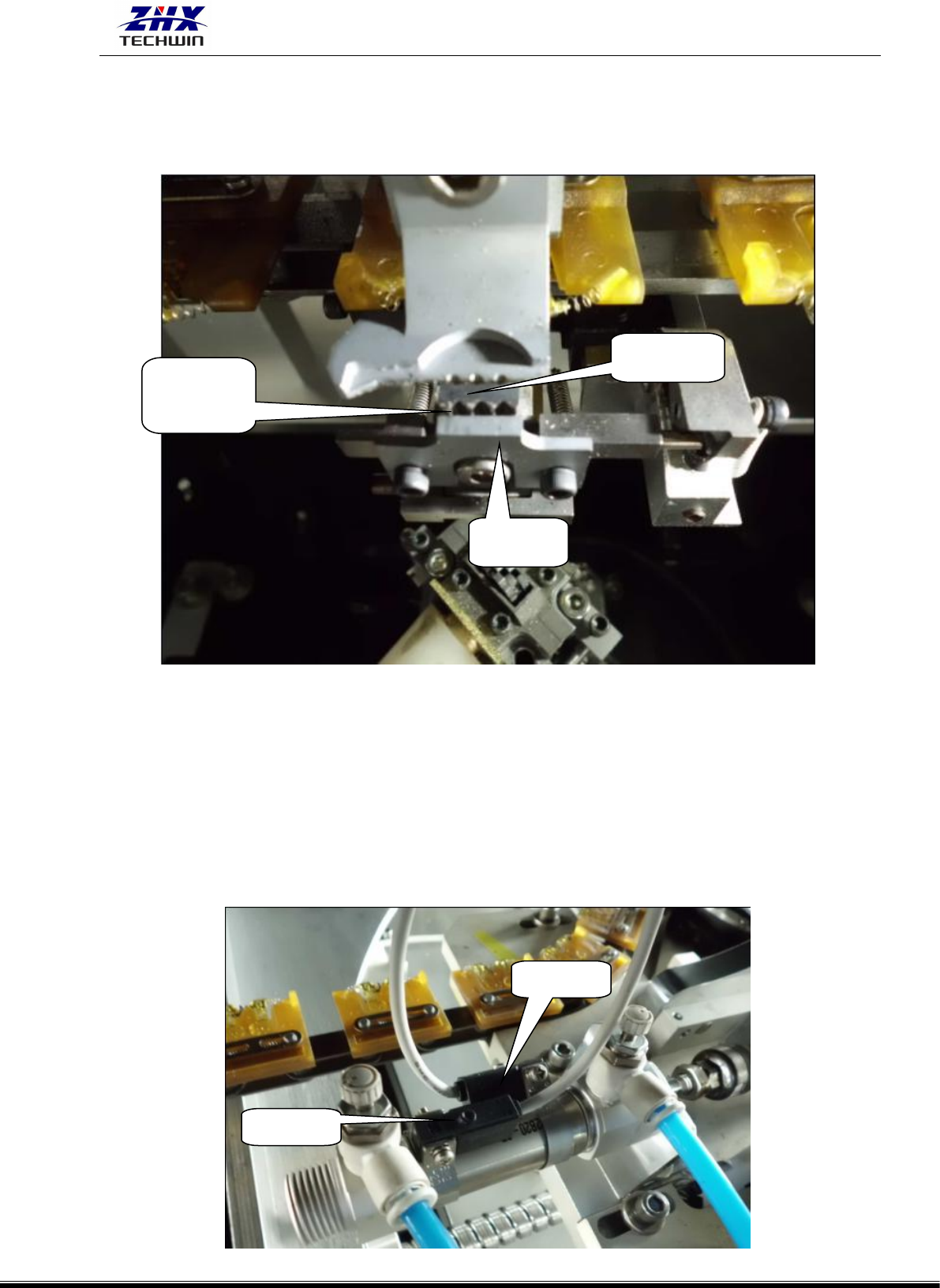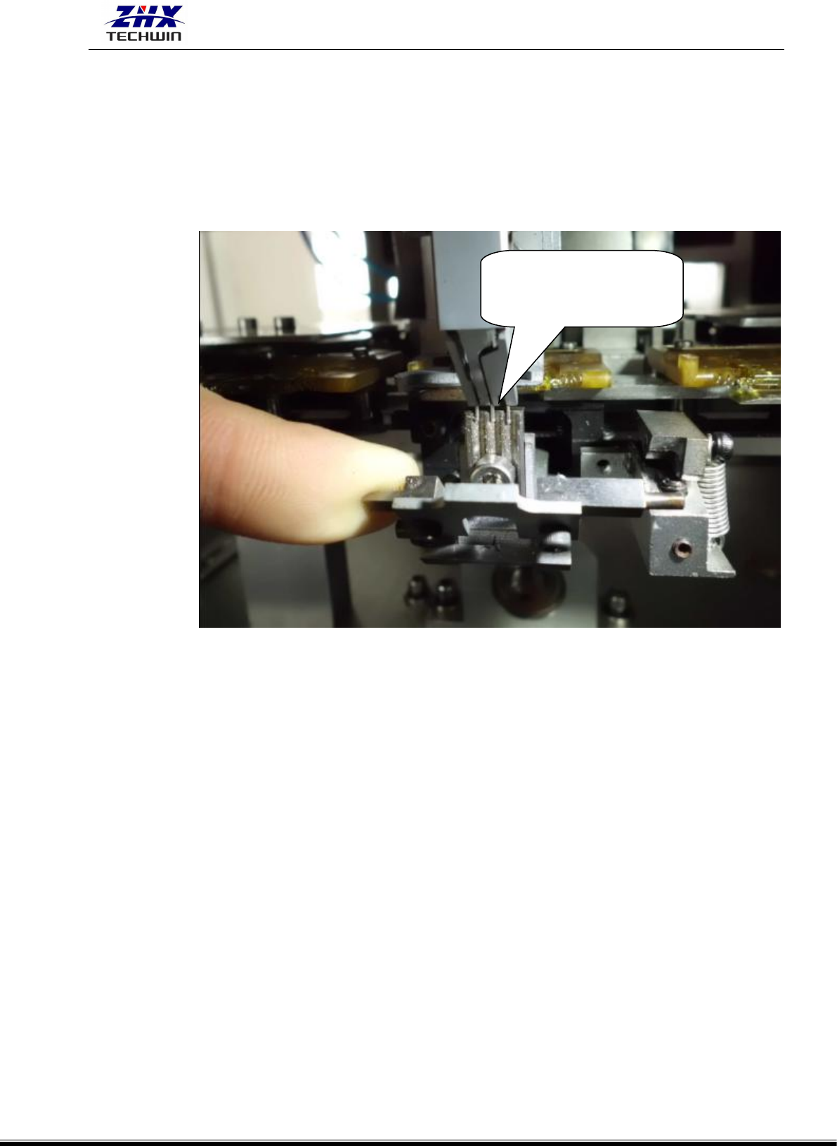 3)松开 CTA 下面的三个固紧螺丝,然后转动调整螺丝,使标准件的两脚正好在送料槽片的两