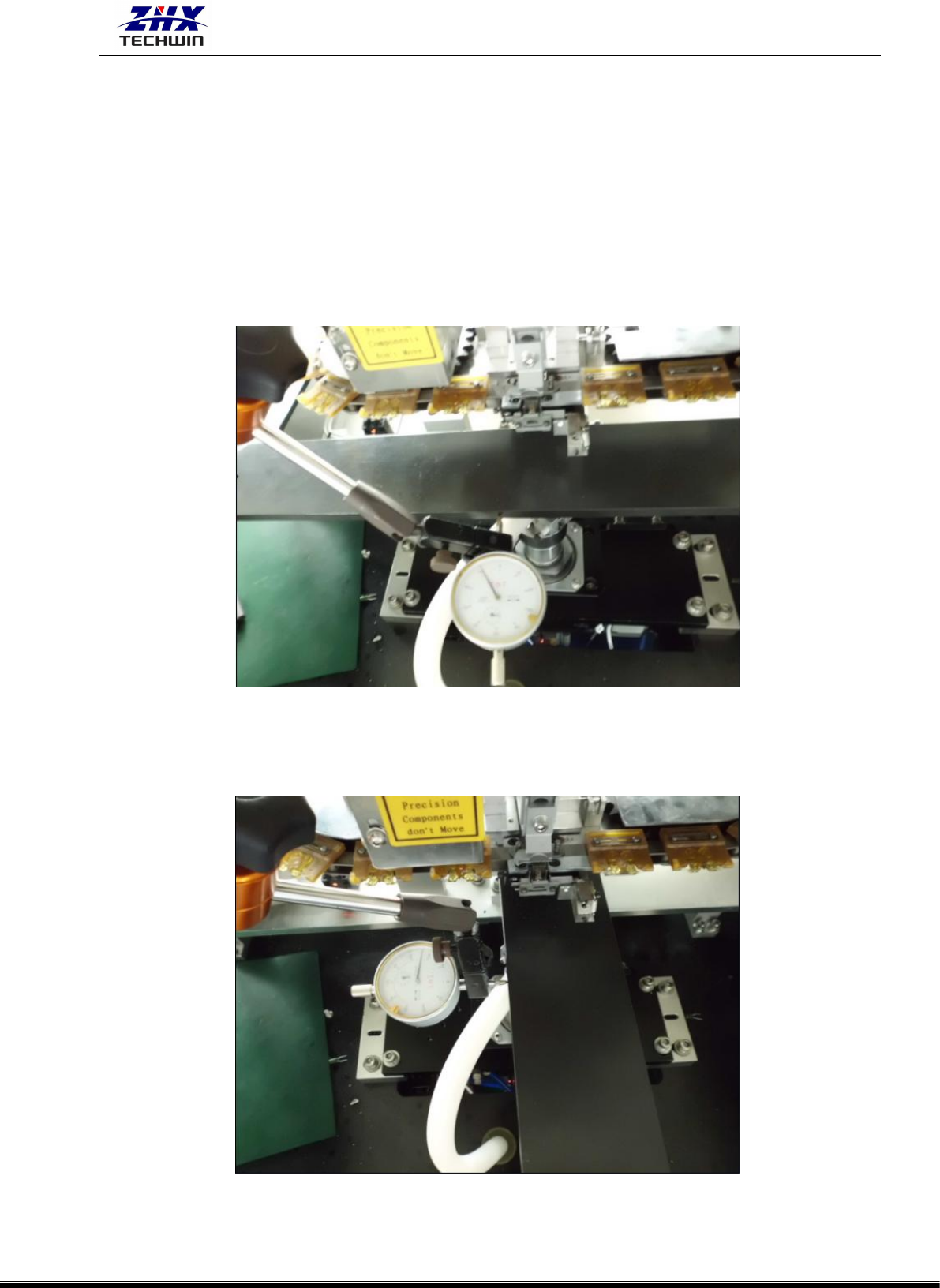 ZHX-R20B/-IN 自动上下板立式插件机操作说明书 深圳市中禾旭精密机械有限公司 www.zhxai.com - 74 - 4、CTA 与插 件头的对中 调整。 1)使机器处于待机状态。 2)将标准元件装在插件主爪上。 3)松开 CTA 下面的三个固紧螺丝,然后转动调整螺丝,使标准件的两脚正好在送料槽片的两 条平行槽中,固紧螺丝。 5、工作台调整( 与卧式机通 用)。 圆盘平行调整。 旋 转 圆 盘 应在 常规 的 操 作 环 境…