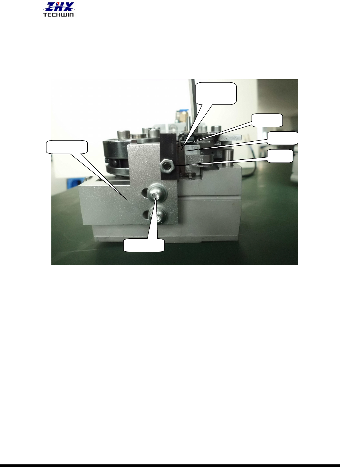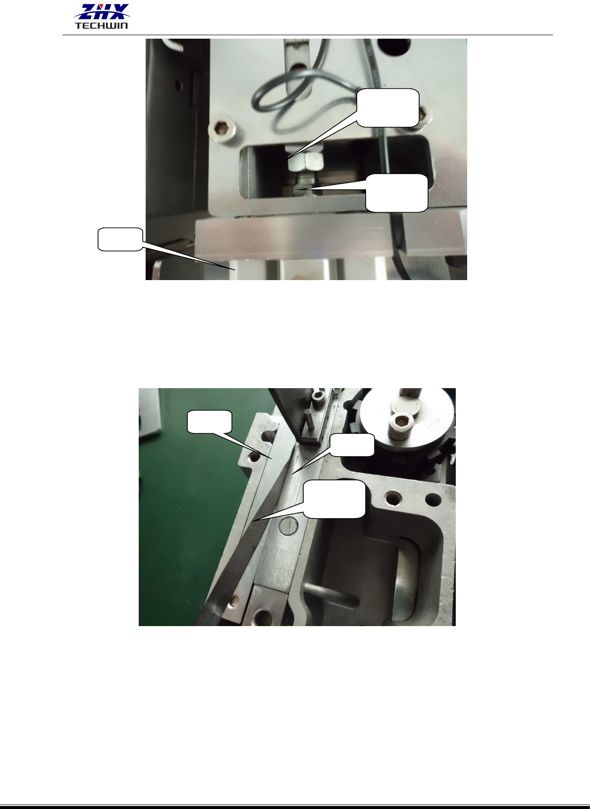 (2)使用塞尺检查二把切刀之间的间隙,如果间隙为 0.038mm,则没有调整的必要,否则按下列