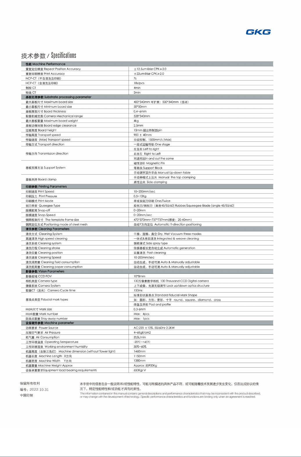 技 术参数 / Specifications 性能 Machine Performance 重复定 位精度 Repeat Position Accuracy ±12.5um@6aCPK>2.0 重复印 刷精度 Print Accuracy ±22um@6aCPK>2.0 NCP-CT (不含 清洗及 印刷) 7s HCP-CT (含 清洗及 印刷) 18s/pcs 制程 CT 4min 转线 CT 2min 基板处 理参数 …