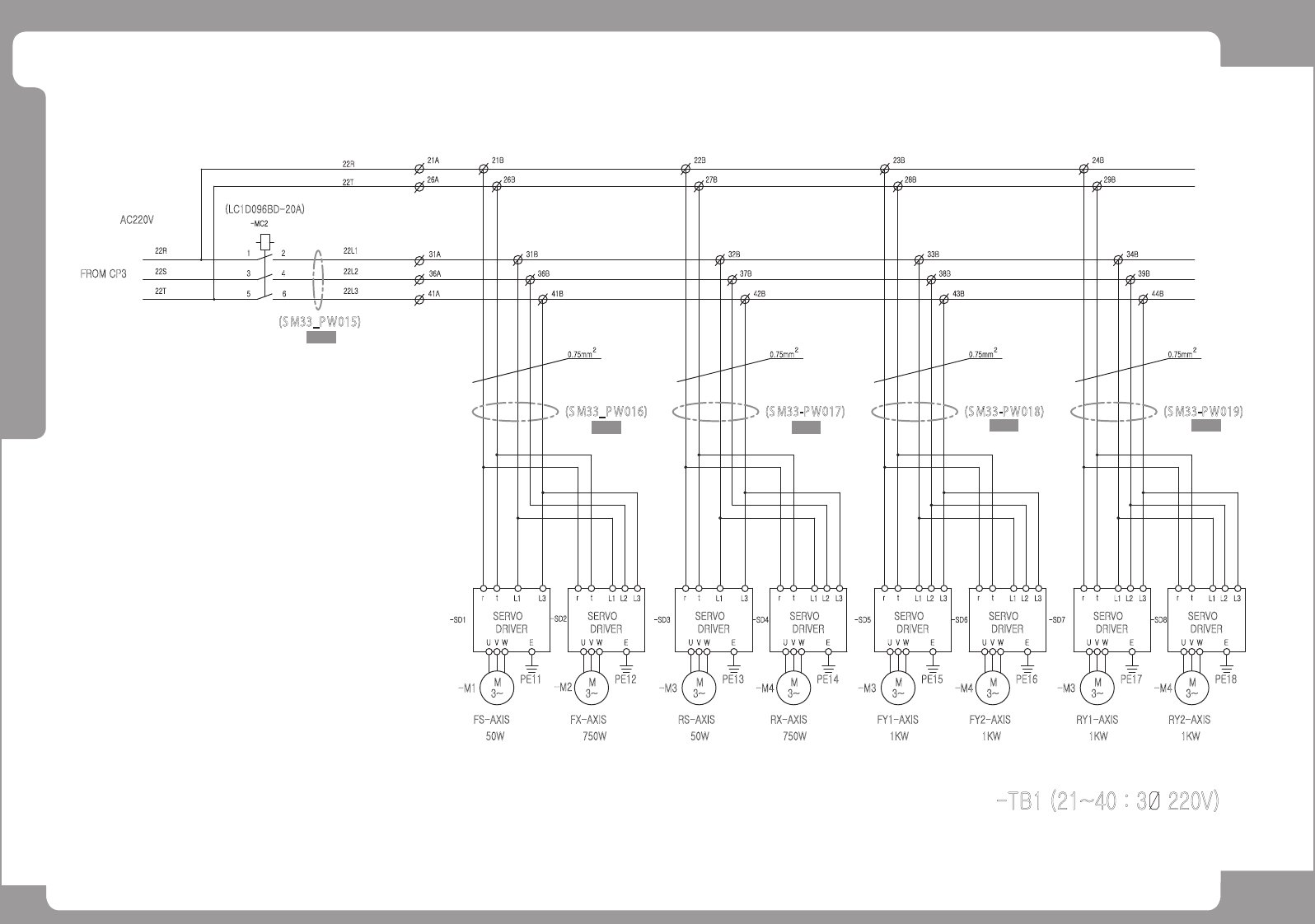 Page SAMSUNG TECHWIN 1 1 1 SM411 E le ct ric C irc ui t Dia gr am (6 /6) E E 13 14 5 9 -A2 +A1 -A2 +A1 13 14 13 14 13 14 24G +24V -FUSE1 -K1 -K1 -MC1 -MC2 -MC1 -READY S/W -K1 -K3 (FRONT) (REAR) -MC2 -K2 -K1 -K3 -K3 (250V…