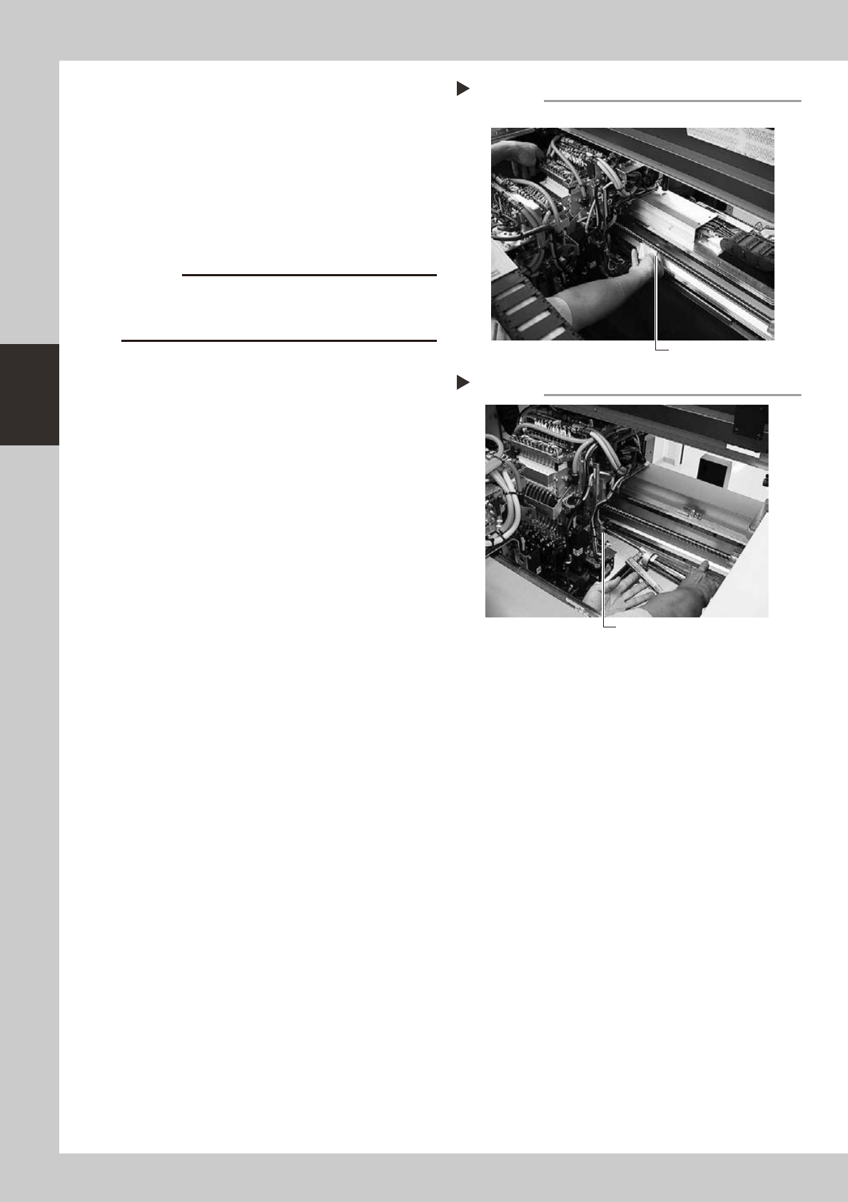 3-10 3 Periodic maintenance items 3 Clean the ball screws. 1. Using the handle, move the head to one end of each axis. 2. Wipe away the old grease and dirt from the ball screw with a lint-free cloth or paper towel (for c…