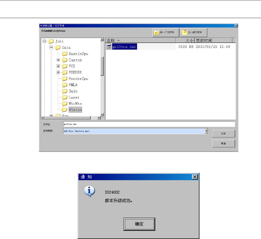MS 参数 6-3 6-2 版本升级 -LNC60 进行 LNC60 固件的版本升级。 6-2- 1 操作 选择 “ 版本升级 ” - “ 版本升级 - LNC60” 后,会显示以 下的对话框。 按 “ 执行 ” 按钮,打 开用于进行版本升级的 对话框。 (默认位置 : D: \ JUKI \ DAT A \ Laser )选择文件( GX10LNC.nf2 ),按 “ 打开 ” 按钮读入文件 ,对 所有全 LNC60 的固件进行版本升…