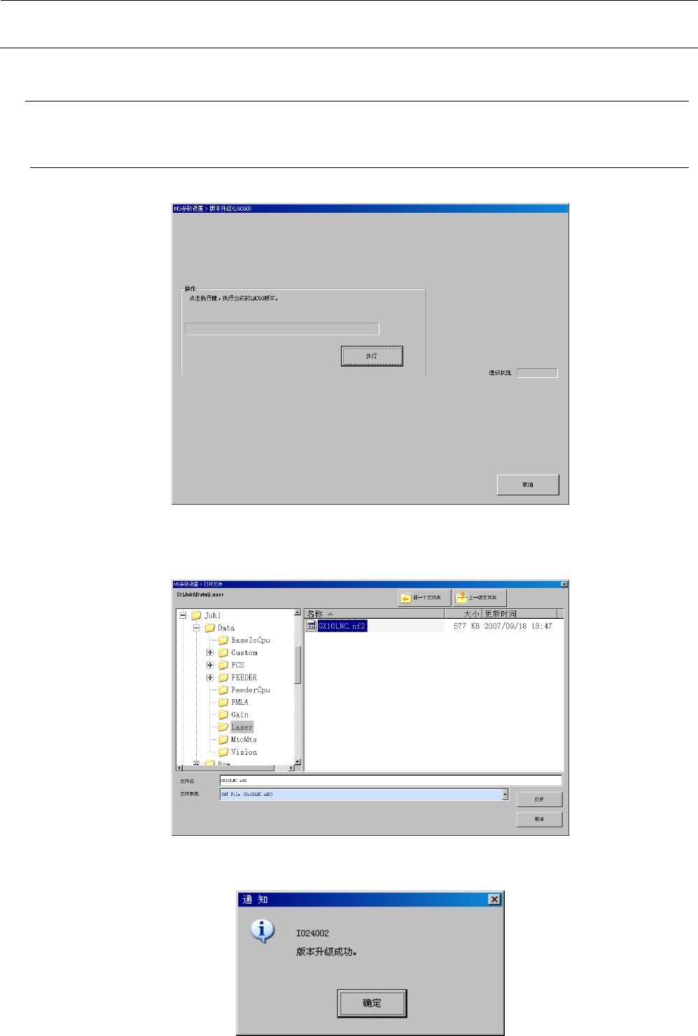 按“执行”按钮,打开用于进行版本升级的对话框。(默认位置: D:\JUKI\DATA\MtcMts)