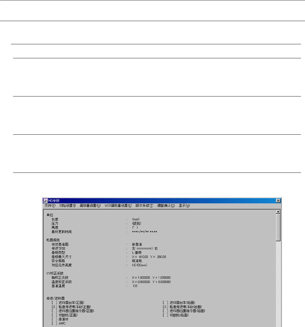 MS 参数 7- 11 7-6 偏移量 7-6- 1 功能 在 VI EW 画面上, 显示偏移量设置中所设 置的项目、值。 7-6- 2 使用模具 本项目中不使用模具。 7-6- 3 操作 从菜单中选择 “ 显示 ” - “ 偏移量 ” 。选择后, VI EW 画面上将显示如下 所示的内容。 可用 “P age U p” “Pag e D own” 按钮、箭头按钮、鼠 标等使画面滚动,以变 更显示区域。