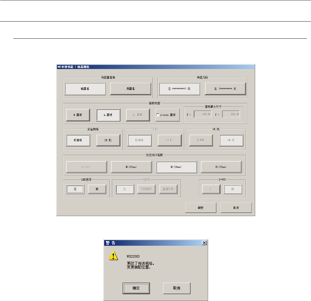 ※ 改变传送规格后如按“确定”,会显示装置组装位置变更的信息,进行MS参数和机器设置坐