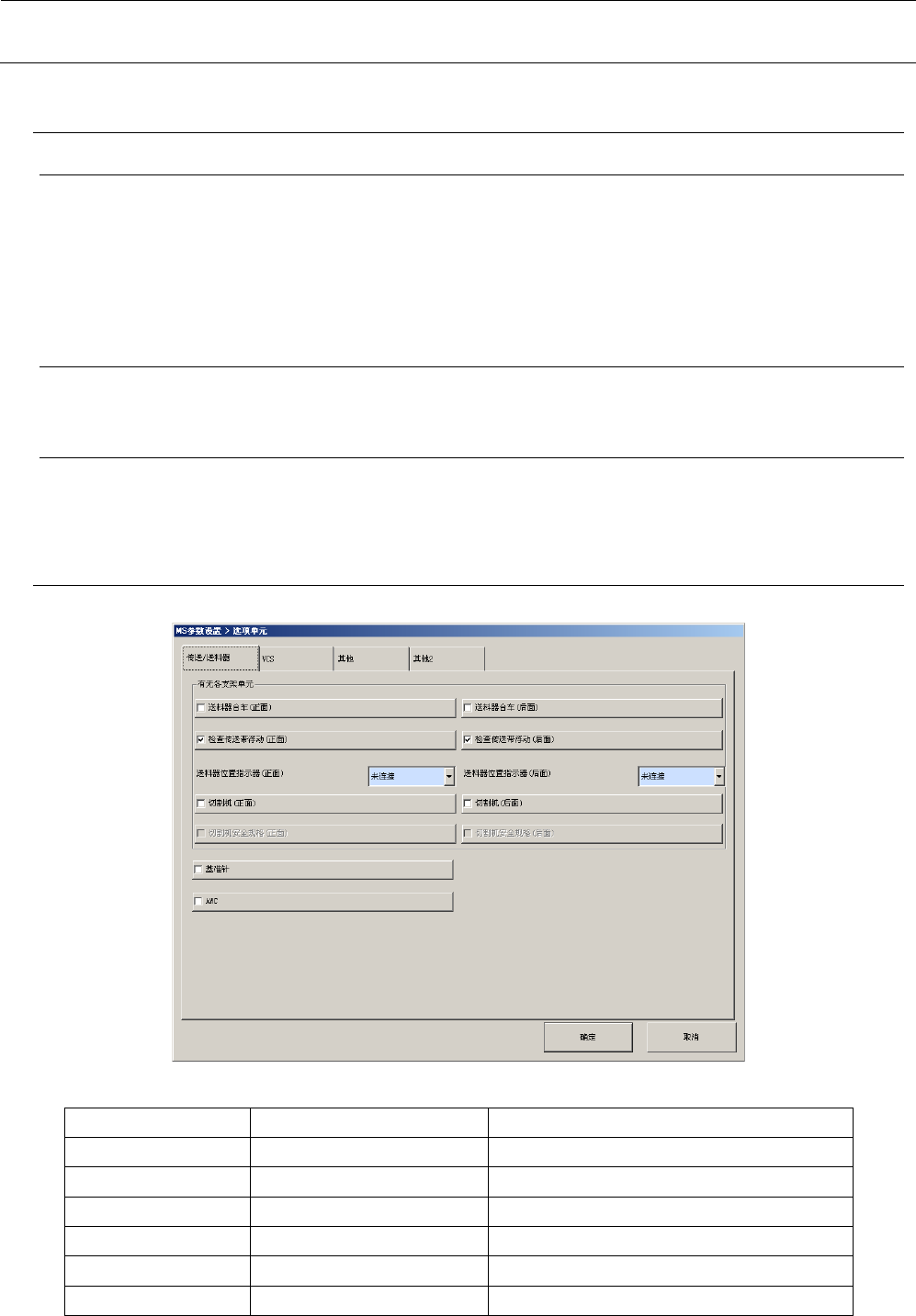 选项分为“传送/送料器”、“VCS”、“其他”等项目,可分别进行各自的选项设定。