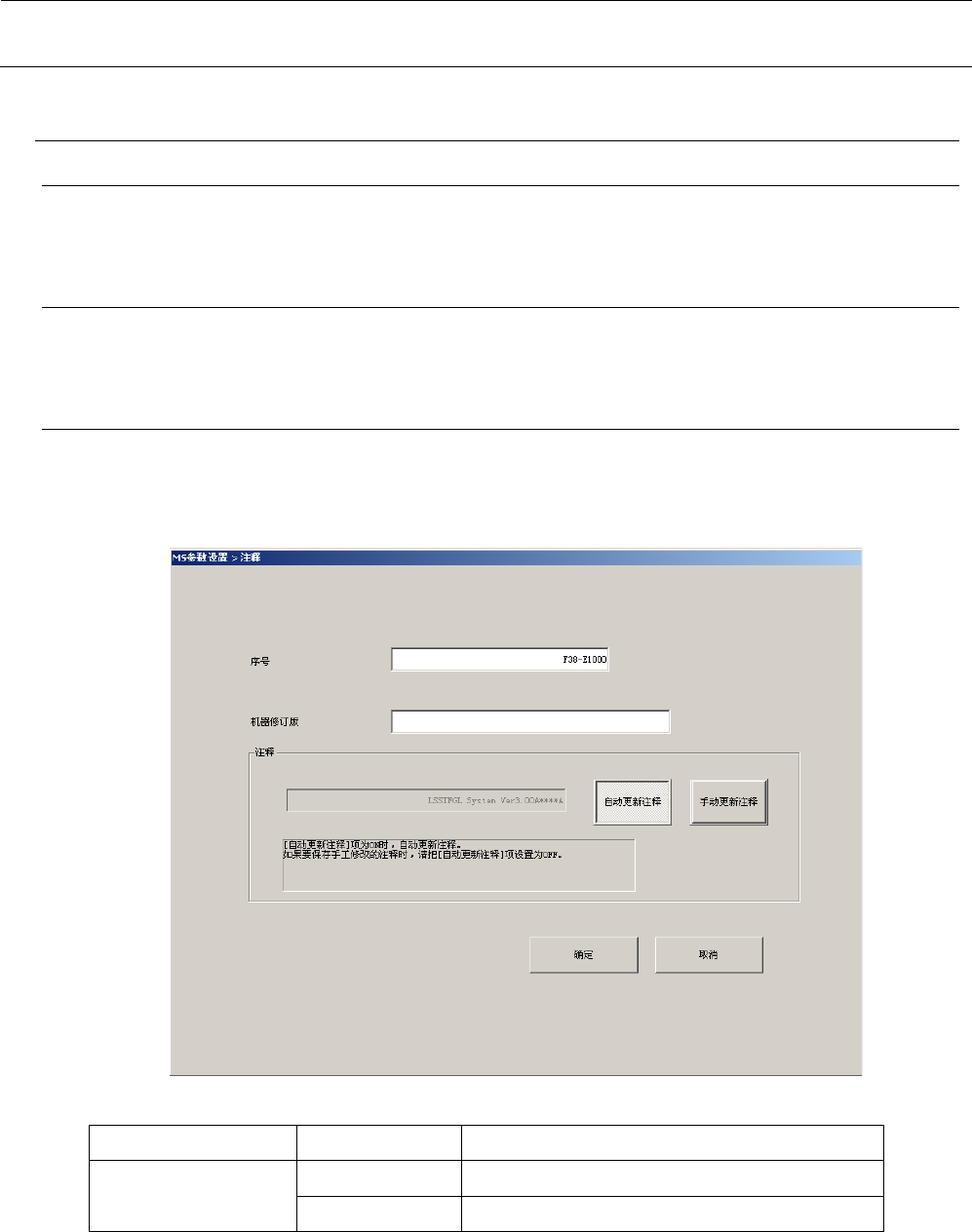 请利用按钮盘输入序号(15字母以内)、机器修订版本(31字母以内)、注释的初始值(31字