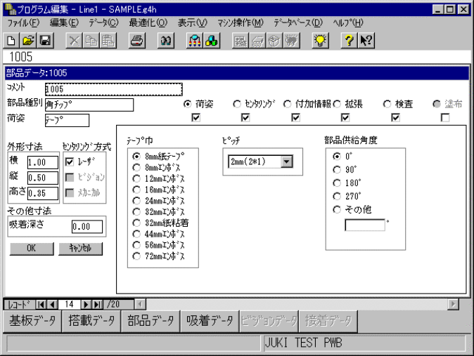 ックする事により、選択した部品データのフォーム表示画面に移ることができます。