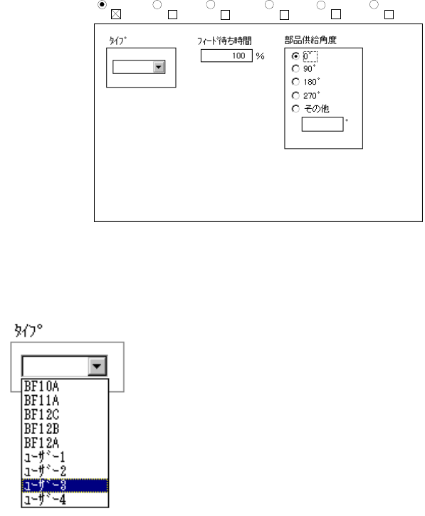 部品の供給角度をラジオボタンで指定します。