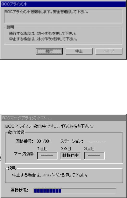 BOCマークアライメント中ダイアログ