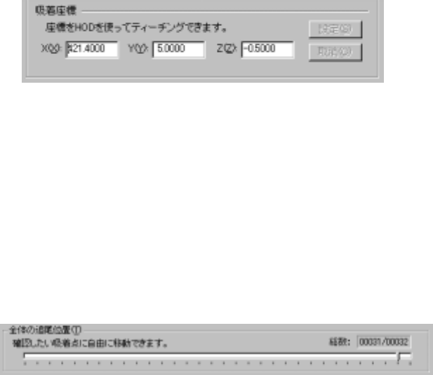 追尾中の吸着座標です。座標値は手入力またはティーチングで変更できます。