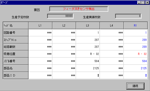 また生産動作中(XY軸移動中)にフィーダ浮きを検出すると,図 6-4-6-1 を表示してポーズ状