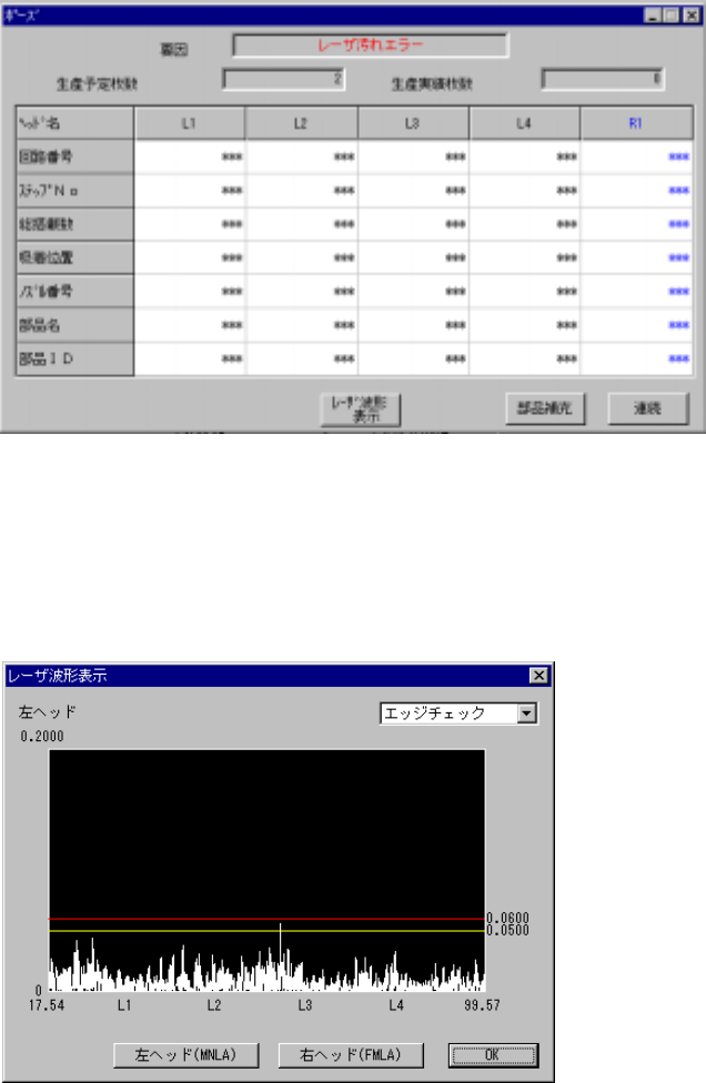 ※ <レーザ波形表示>ボタンは、一時停止画面およびリトライリスト画面に表示されます。<
