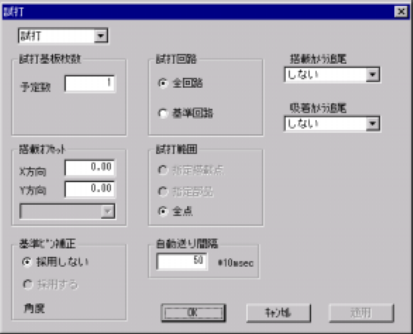 メニューバーの [生産条件−試打 ] を選択すると,基板生産の試打条件設定画面になります。