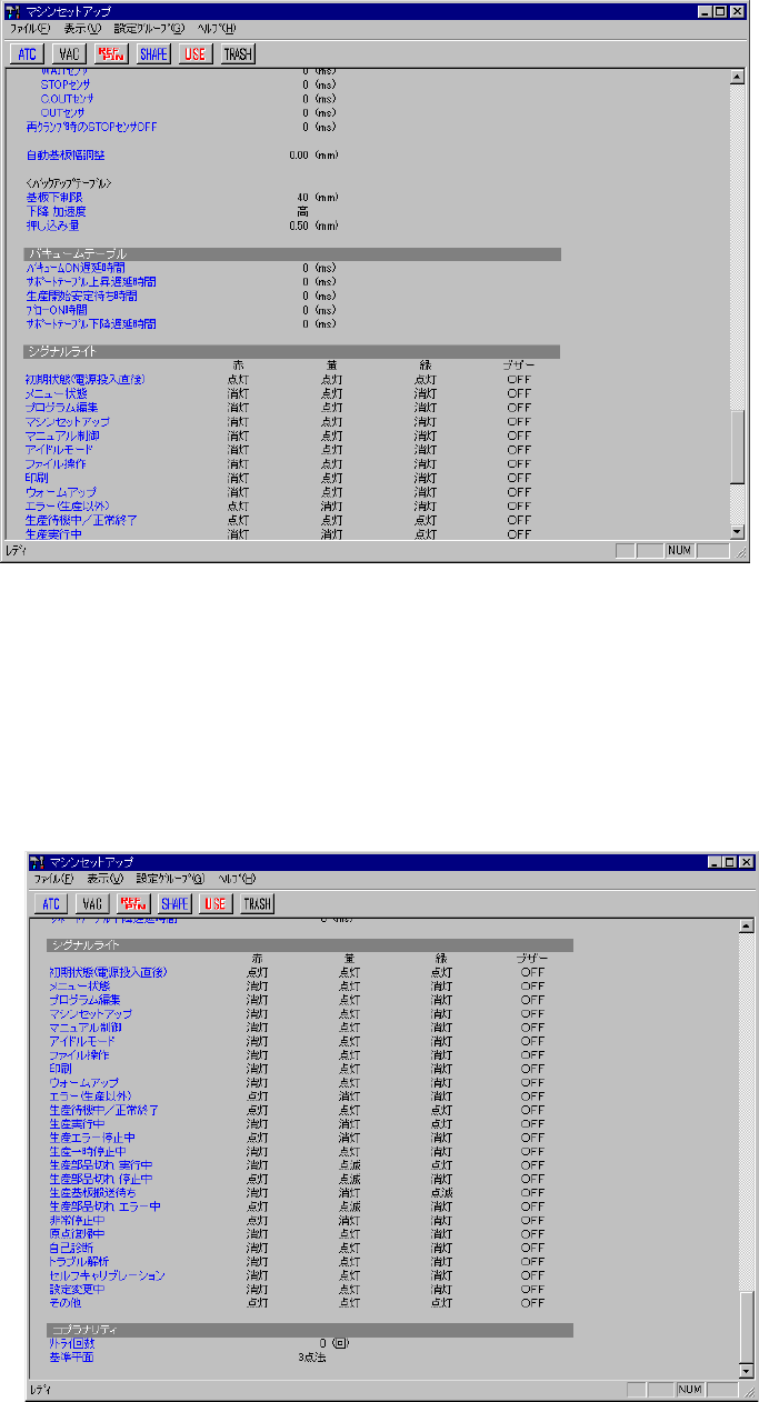 「シグナルライト」「コプラナリティ」の現在設定状況「シグナルライト」「コプラナリティ」の現在設定状況