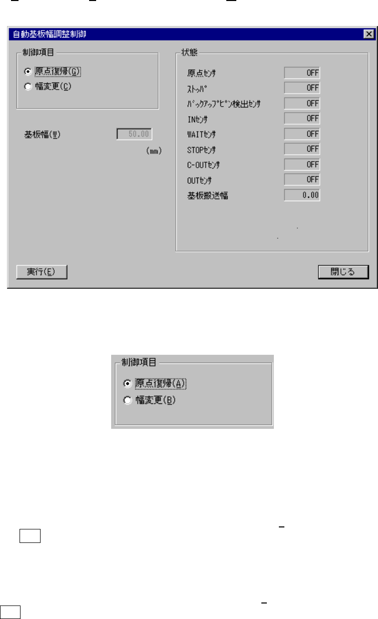 自動基板幅調整制御ダイアログ自動基板幅調整制御ダイアログ