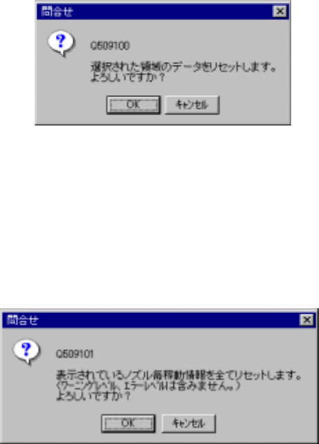 ・ <OK>ボタンを押下するとノズル毎稼動情報の全データをリセットします。<キャンセル>ボ