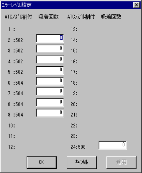 メニューバーの [ツール−エラーレベル設定 → ノズル毎] を選択すると図 9-4-2-4-1 が表示され