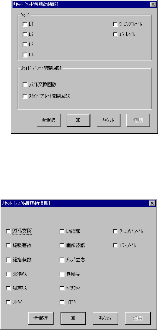 稼動情報リセットダイアログ