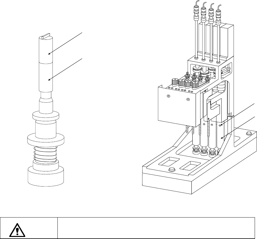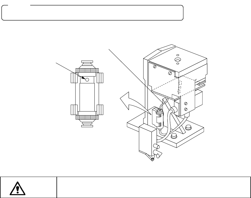 13 - 6 13-2-4. エアフィルタ(ヘッド) エアフィルタ(ヘッド) エアフィルタ(ヘッド) エアフィルタ(ヘッド) 1. Z スライドシャフト①の止めねじ②をゆるめて,ノズルアウタシャフト③を抜きます。 2. フィルタ④の汚れを点検して下さい。 3. 汚れ等があれば,ノズルアウタシャフト③からフィルタ④を交換します。 4. ノズルアウタシャフト③を Z スライドシャフト①に差し込み,止めねじ②でしっかり固 定します。 フィルタ…