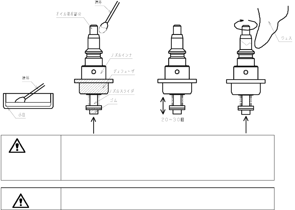 なお、ノズルのディフューザとゴムの部分(下図斜線部)には、オイルが付着しないように注意して