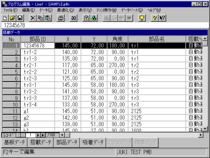 搭載データの入力画面が立ち上がると下図の様なリスト画面が表示されます。
