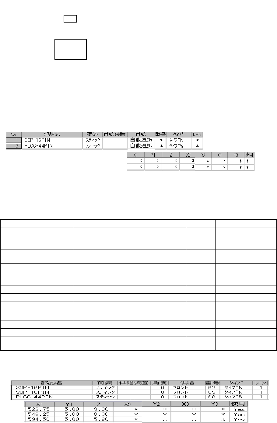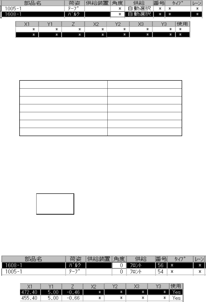 4 - 97 ② 角 度 角度 角度 角度 部品吸着角度の指定をします。 ● デフォルトで、部品データで設定した角度が入っています。 変更する場合は、入力フォーカスを角度に移動して入力して下さい。 ・ 吸着データが作成されるときに、部品デー タの供給角度がデフォルト に設定されます。 ・ 部品データを常設情報から呼び出して作成した 場合、吸着データが作成さ れたときに 常設情報の方向がデフォルトに設定されます。 ・ 部品データを、データ…